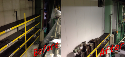 5月の長期連休を使って、以前まで使用していた金型を置く棚を撤去しました。 簡単に撤去と言っても、創業当時からある棚で解体するにもホコリが凄く出ます。 その為、大事な大事な設備に全てシートをかぶせ、万全な体制で行いました。 撤去後は、壁面も綺麗に塗装した事もあり、工場が明るくなりました。 2014/05/06 goto-mind