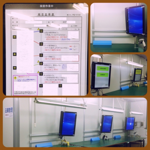 品質管理では、受入・出荷検査で使用する「検査基準書」をファイルから探し作業を行っています。 でも、毎日行う作業で探すのが大変! そこで、ジャーン!! 23インチワイド画面タッチモニター式PCと、 弊社オリジナル「生産管理システム」と連動させ作業性の向上をさせました。 見た目も、う~ん、イイ感じ~。 2014/06/13 goto-mind
